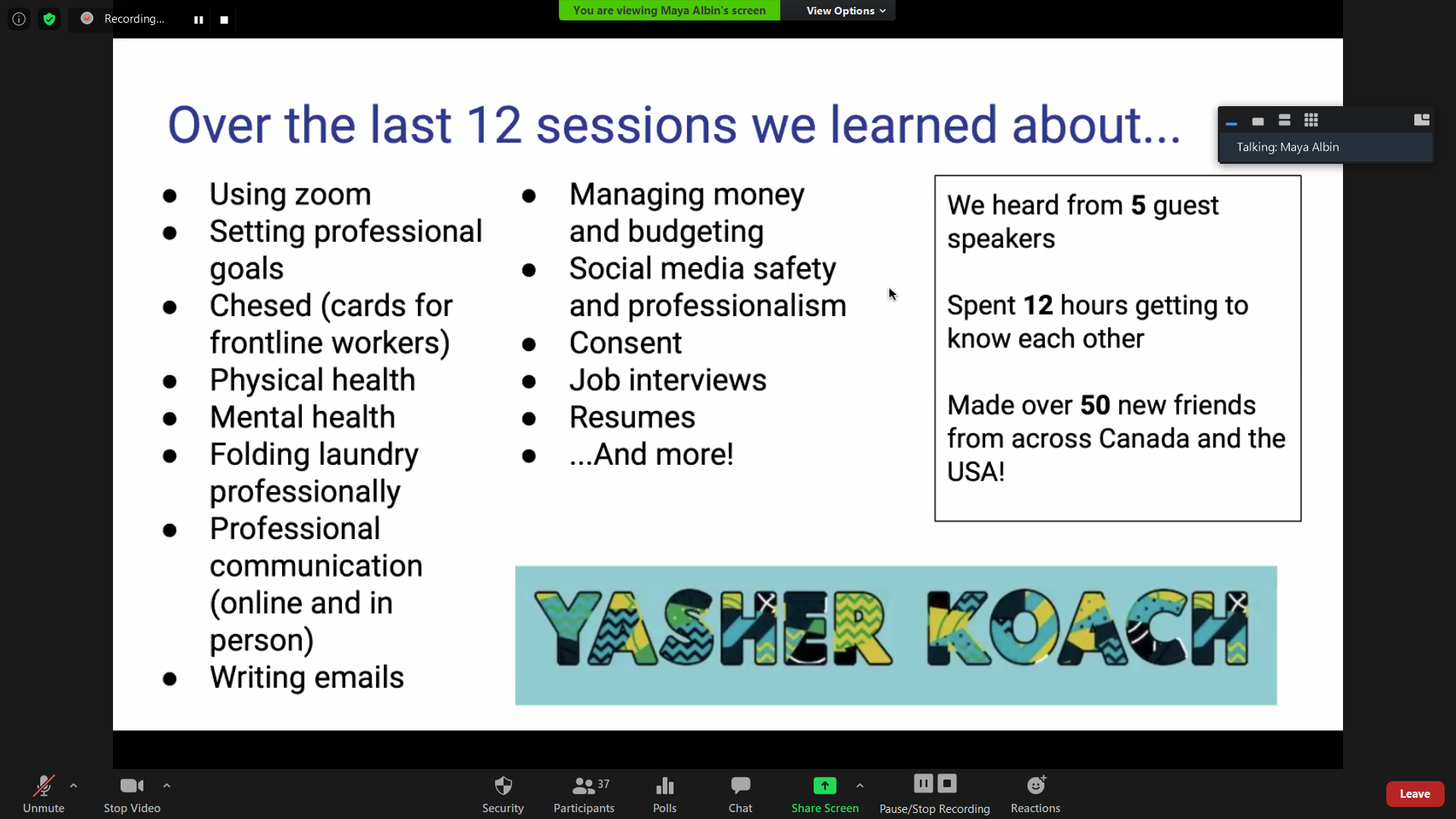 In our final session three days ago, Talia said, “I can’t believe how fast it has gone by. It is crazy! Austin said, “I hope we can continue in the fall!” Participants had razor sharp memories for what we did in the previous 11 sessions. Zach liked learning about budgeting and self-advocacy. Maya liked folding clothes and learning about resumes. Carly liked the interviews with alum. For our last session, 50-year-old Matthew, an alum of Tikvah New England who was our guest in session 11, returned as a participant. Sydney enjoyed learning about money and Tiffany remembered learning about personal space.