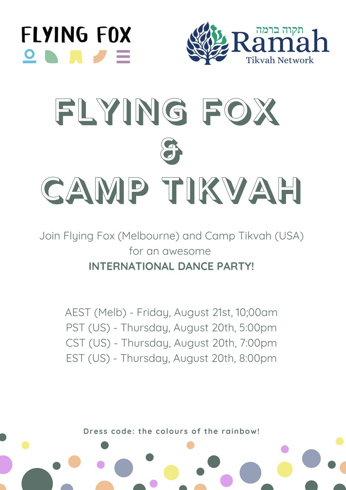 We are reviewing the surveys and seeing just how much participants want to continue. Stay tuned as we consider ongoing programing for the fall. For now, we are planning a special evening this Thursday when we will be joining friends and colleagues from Flying Foxes, a program in Australia which provides socialization programs for people with disabilities. Check out our International Dance Party!