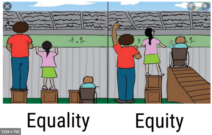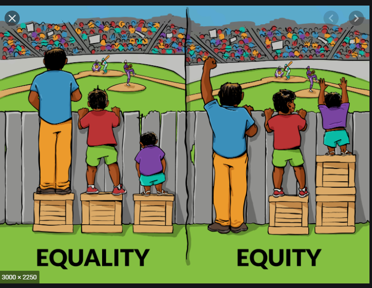 There are many wonderful images of equity vs. equality online—simply google it. Some images go even further—they point out that the ideal third option is justice—removing systemic barriers so that the cause of the inequity is addressed. May we strive to offer access for everyone—it is only fair!
