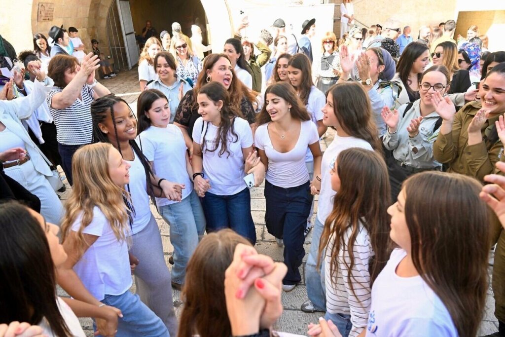 The Jewish boys put on tefillin and were called up to the Torah, one by one, while the girls participated in a challah-baking workshop at the Heritage Center. Muslim participants toured the Dome of the Rock, symbolizing the event’s inclusive nature.